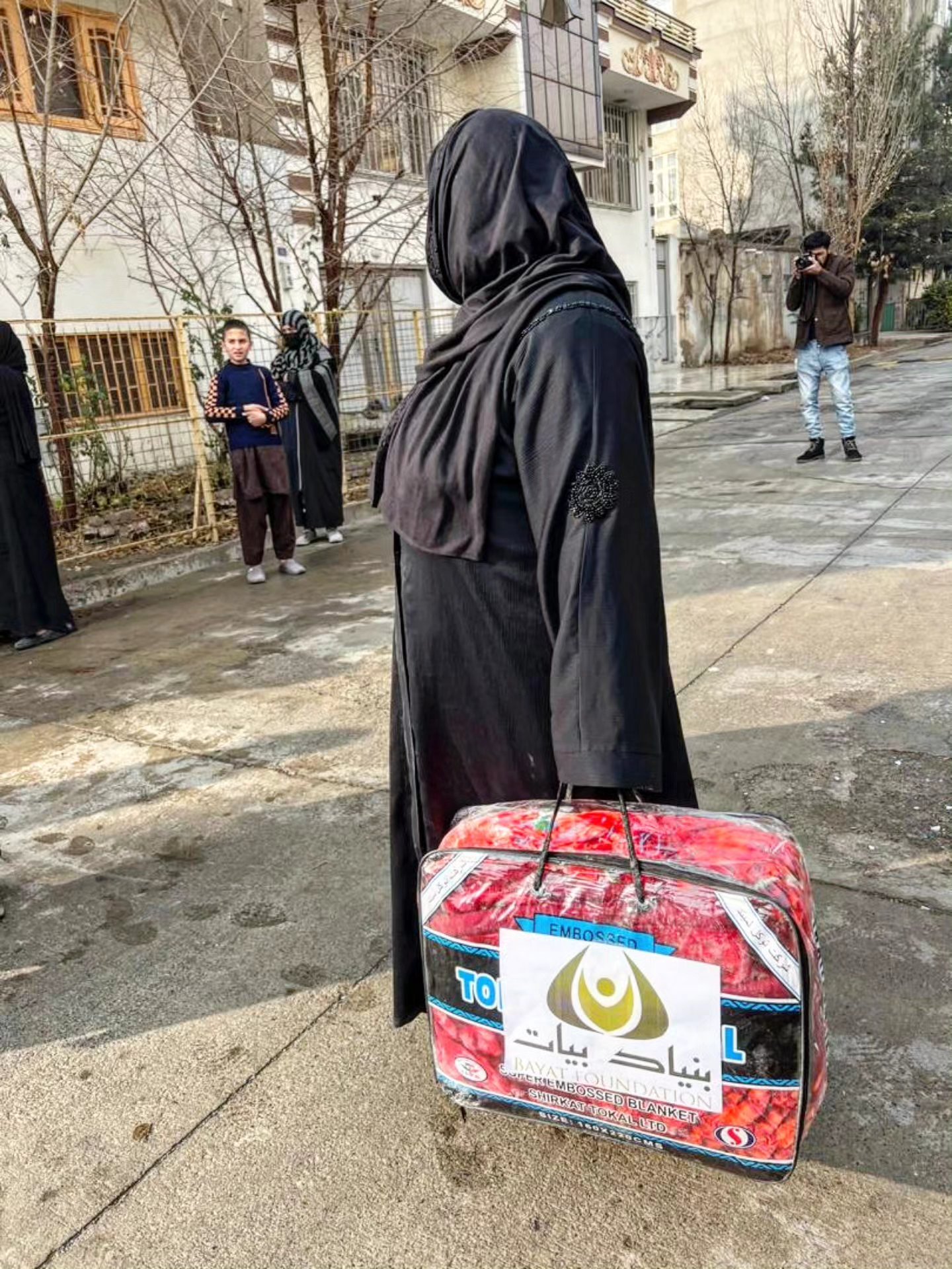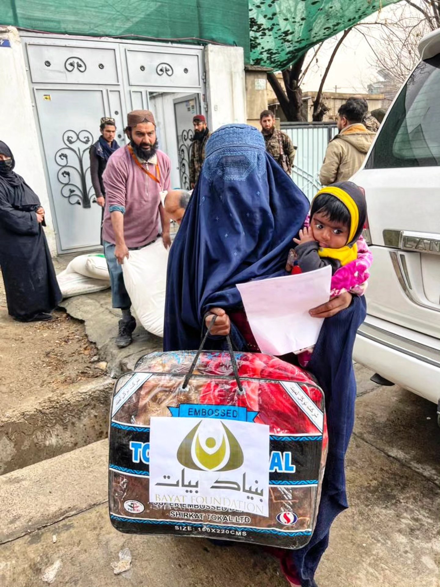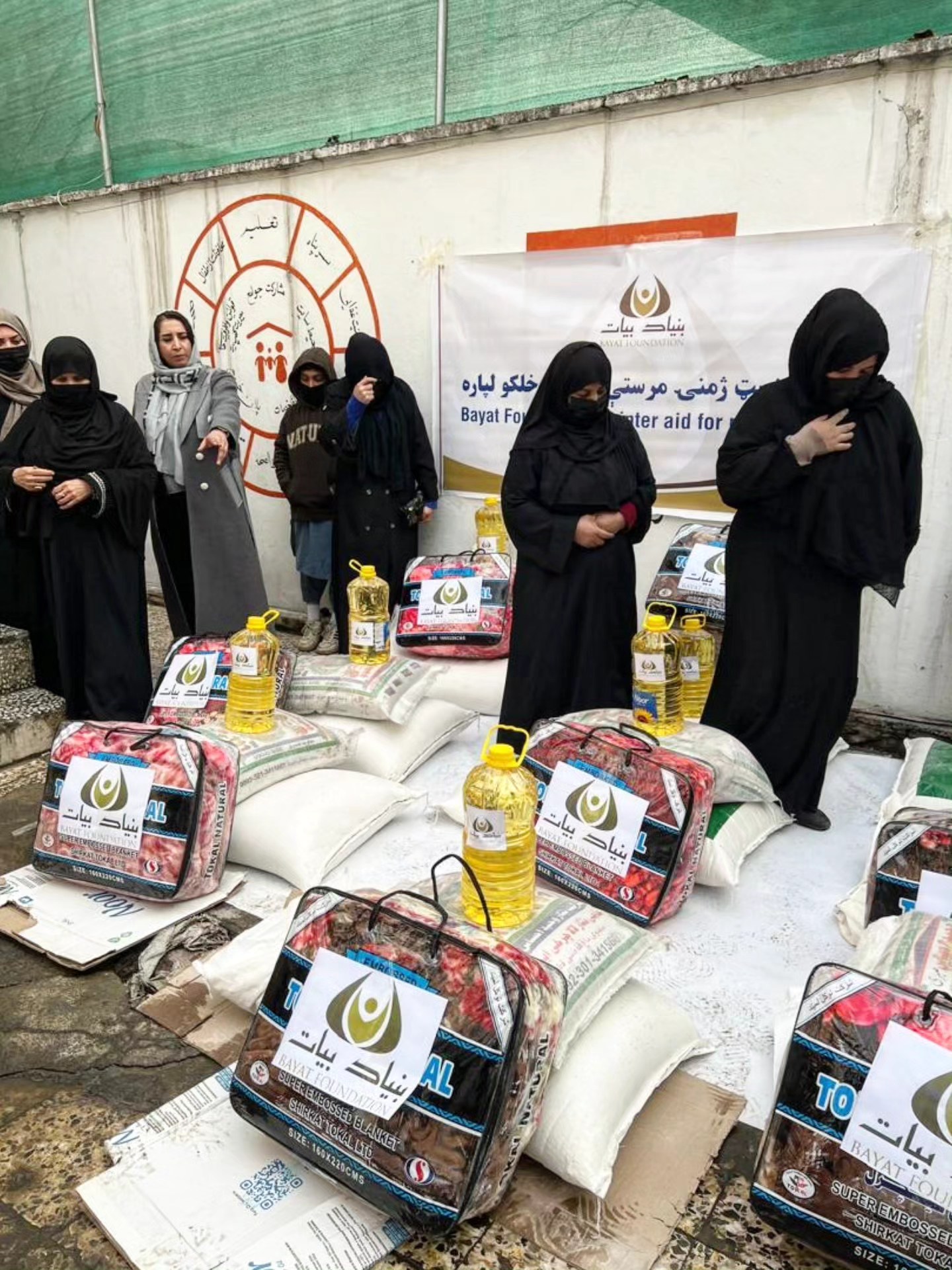 As part of the Bayat Foundation’s Annual Winter Aid Drive, essential food items—including flour, rice, oil—and warm blankets were distributed to 100 families in Kabul City’s 5th District.