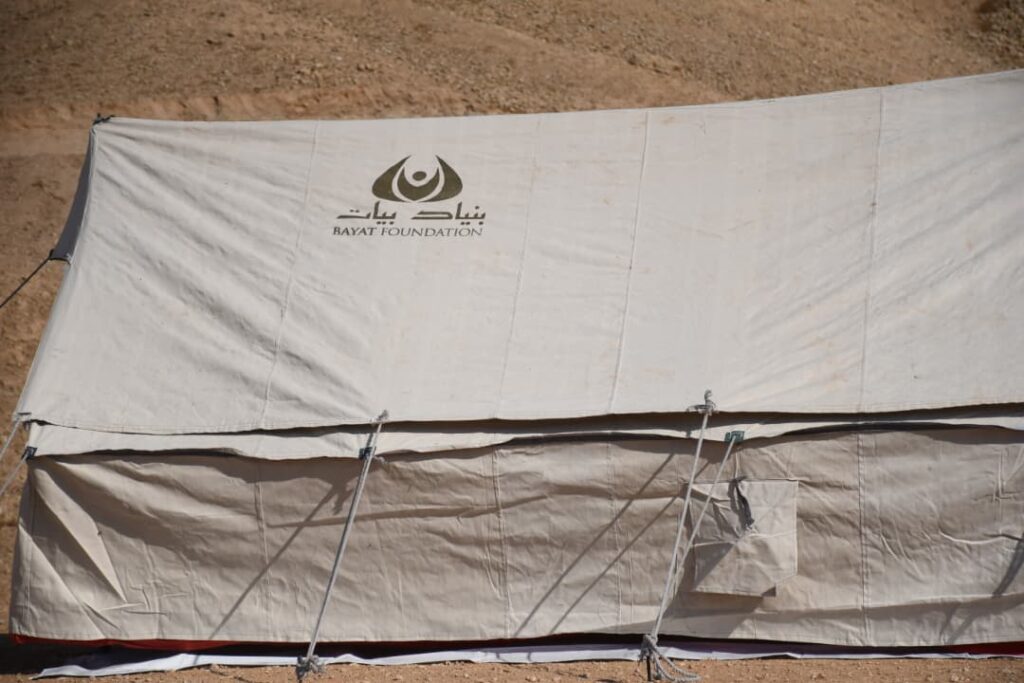 One victim said: “Our life has been devastated. We thank the Bayat Foundation for standing with us and bringing us tents.”