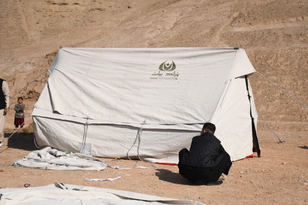 As part of its ongoing humanitarian assistance, Bayat Foundation has distributed hundreds of tents to families affected by the earthquake in the Khulm and Feroz Nakhchir districts of Samangan province.
